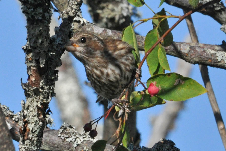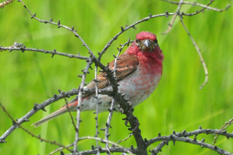 Purple Finch (Carpodacus purpureus) MINNESOTA: Lake Co; Superior National Forest, railway at CR 2 - male - July 2016 MAINE: Hancock Co; Acadia National Park - female - July 2012
