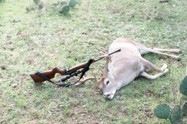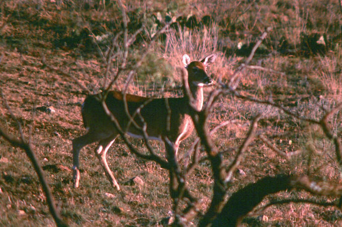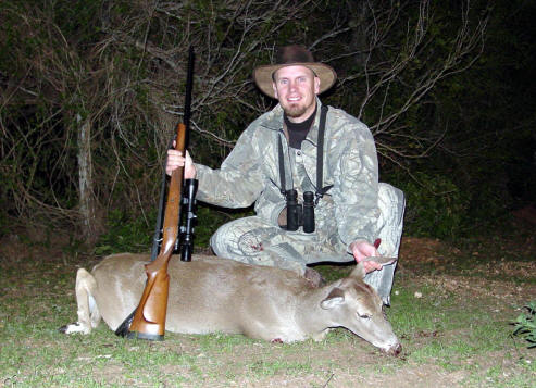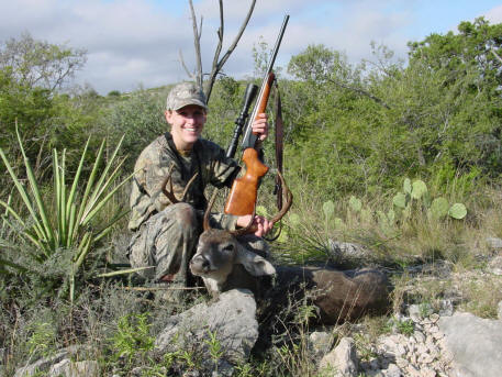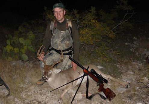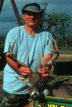 | This year, we took a lease north of Coleman. It had been a dry year, and antler growth could have been better, but we all saw nice bucks. I shot an 18" wide 9 point, and my cousin Robert shot a huge 7 point that was one of the dominant bucks on the place. I saw quite a few other nice bucks, including a big 9 point after I had shot my buck that was a fairly young deer (I shot him in 2001 as a 10 point). |