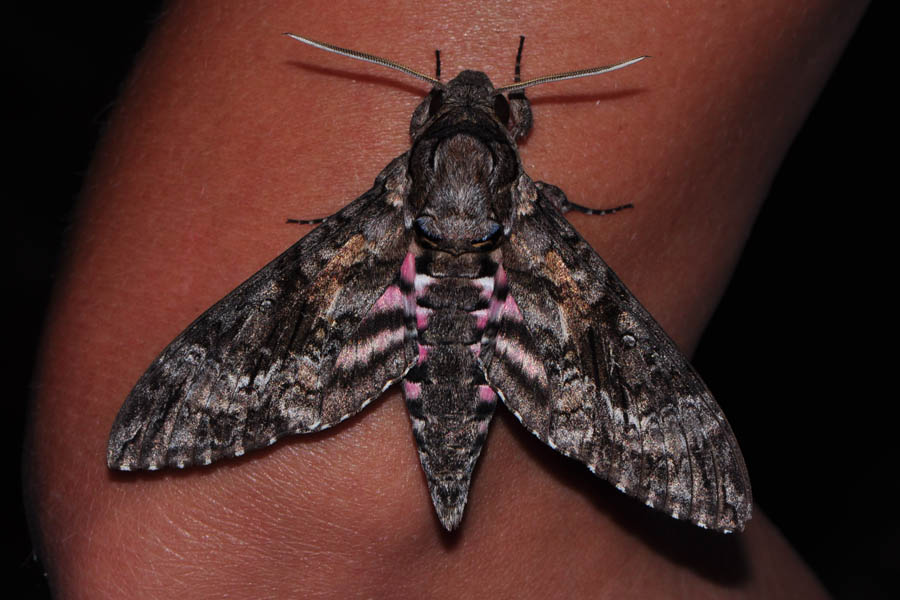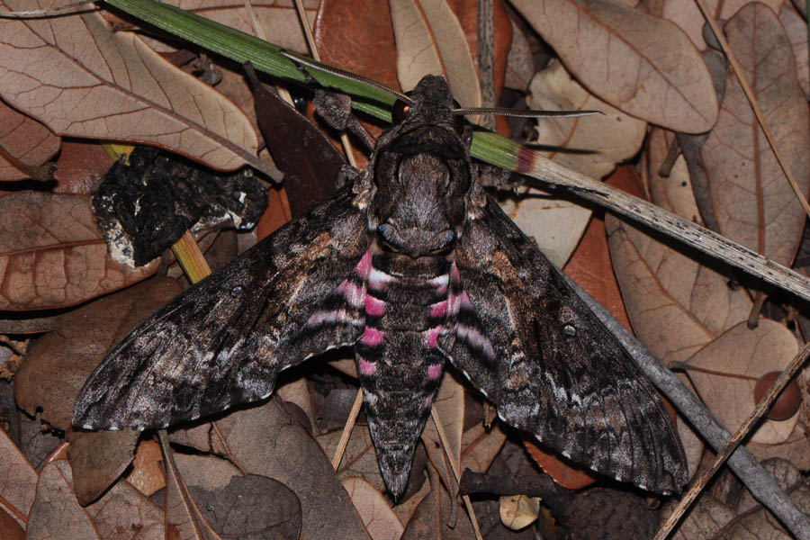 Pink-spotted Hawkmoth (Agrius cingulata) 7771 TEXAS: Kinney Co; Brackettville, my yard - October 2014 TEXAS: Kinney Co; Brackettville, my yard - May 2014 TEXAS: Kinney Co; Brackettville, Brackett HS - April 2013