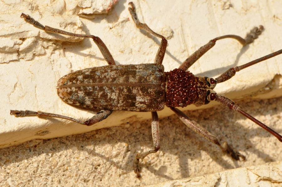 Pine Sawyer (Monochamus carolinensis) TEXAS: Jasper Co; jct TX 63 and FM R255 - May 2011 (red "beads" on thorax are mites)