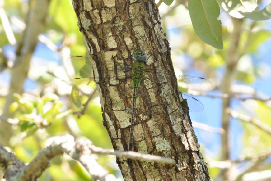 being consistently chased off by patrolling Common Green Darners, Anax junius,