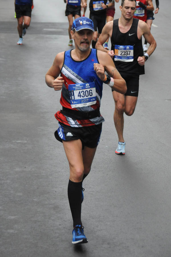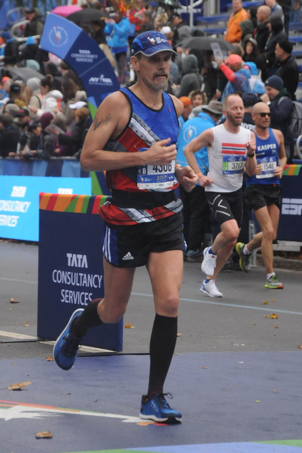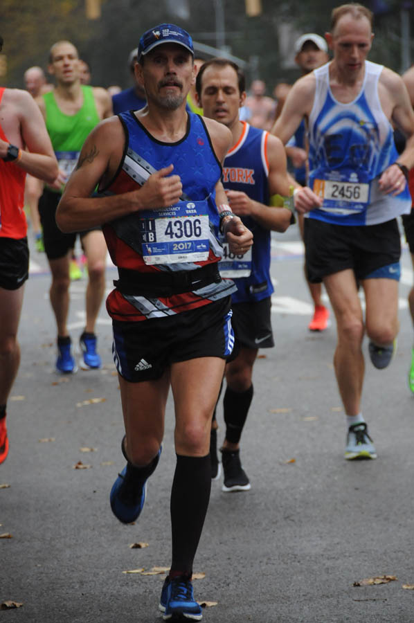 Temps were moderate for this time of year in NYC - basically in the mid- to upper-50s throughout the day, with a fine misty drizzle throughout the 2nd half of the race. I thought running through the 5 burroughs was pretty cool, although telling the difference between Brooklyn and Queens wasn't possible except by reading signs, and the little bit of the course that goes through the Bronx was also unrecognizable. Running in Manhattan was cool, and finishing in Central Park was great - but that long hill on the east side of Central Park at mile 24 was a slog. Crowd support was great throughout, particularly in Manhattan and Brooklyn. I had no muscle issues whatsoever, although my calves were tight - compression socks probably saved my race on that score.