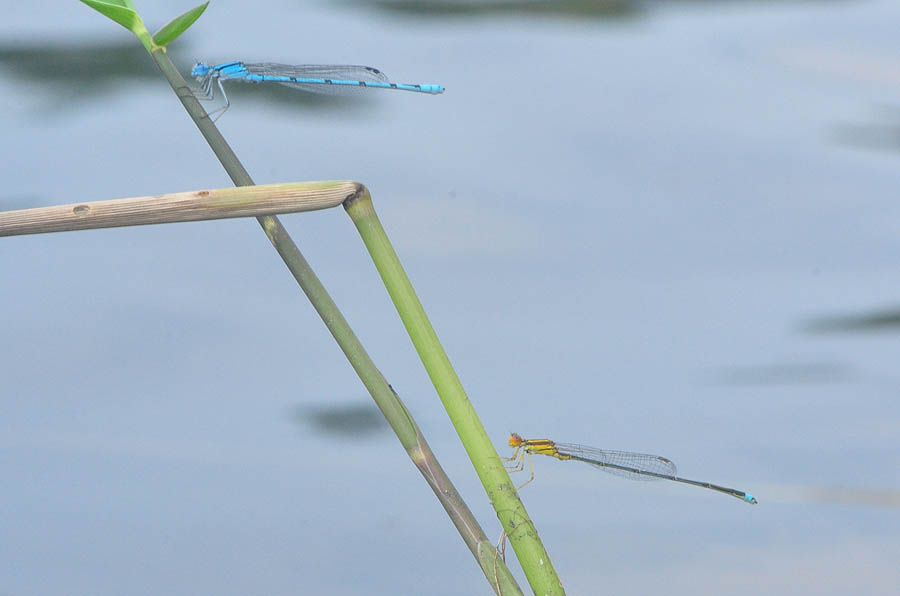 Atlantic Bluet (Enallagma doubledayi) and Golden Bluet (Enallagma