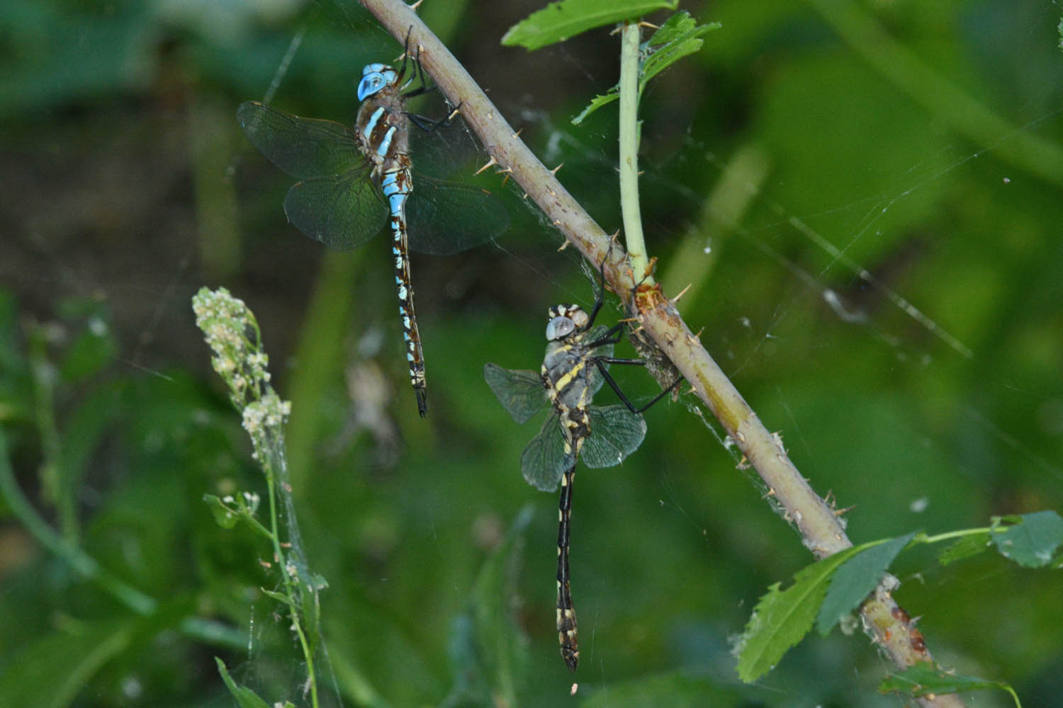 Common Green Darner (Anax junius) female and Blue-eyed Darner (Rhionaeschna