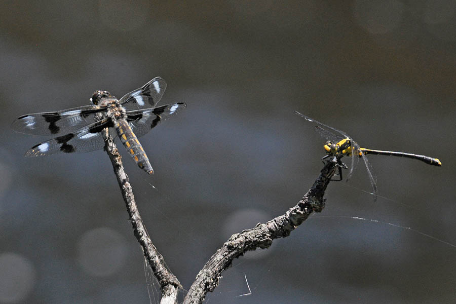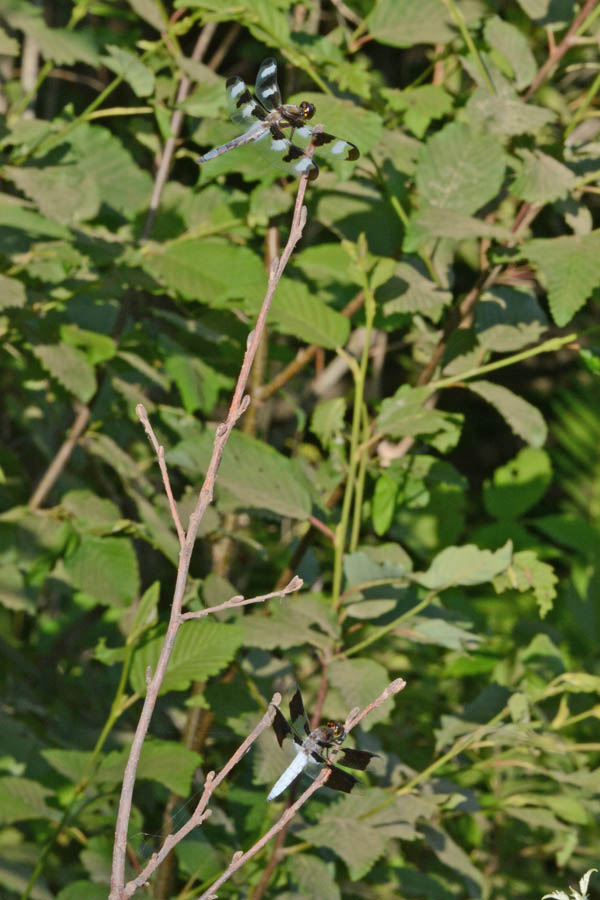 Twelve-spotted Skimmer (Libellula pulchella) and Common Whitetail (Plathemis lydia)
