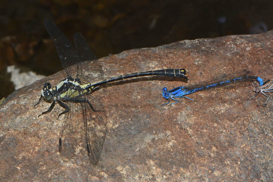 Southwestern race of Eastern Ringtail (Erpetogomphus designatus ssp) and Powdered Dancer (Argia moesta) - males