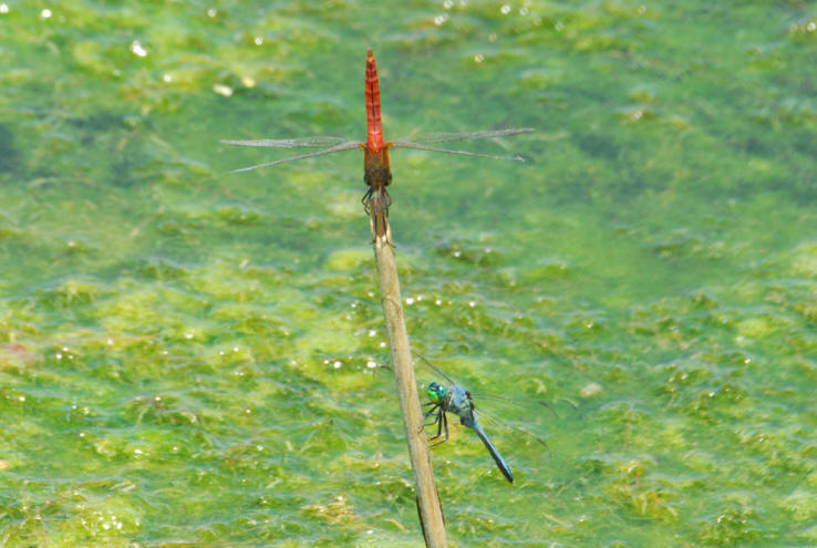 Red-tailed Pennant (Brachymesia furcata) & Eastern Pondhawk (Erythemis